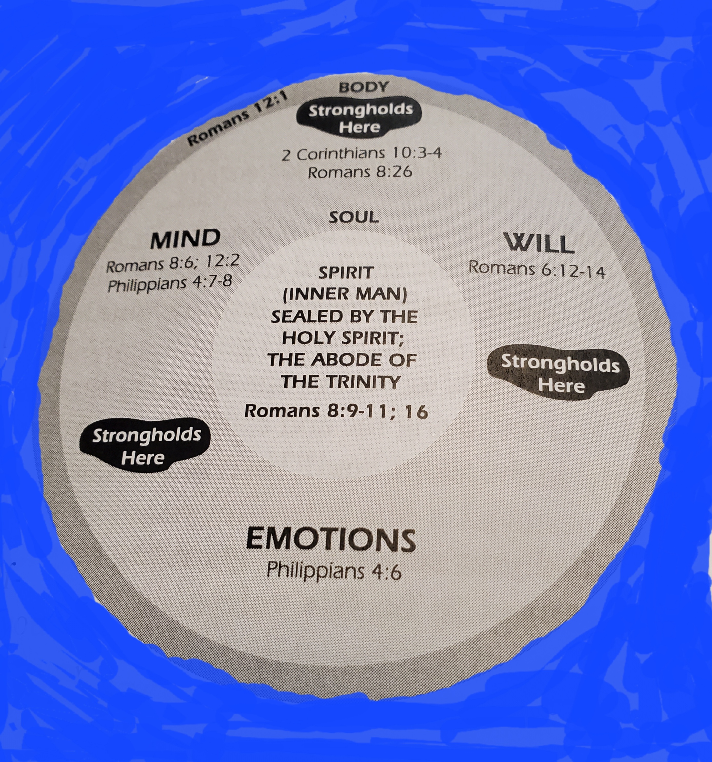 Thought #2 – Body, mind and soul; let’s clear it up. When Adam and Eve sinned (remember sin separates) they died, but wait, were they not still walking around? They died spiritually, separated from that intimate relationship with God the life giver. But still physically walking around in their body and thinking with their mind. We therefore all born spiritually dead.