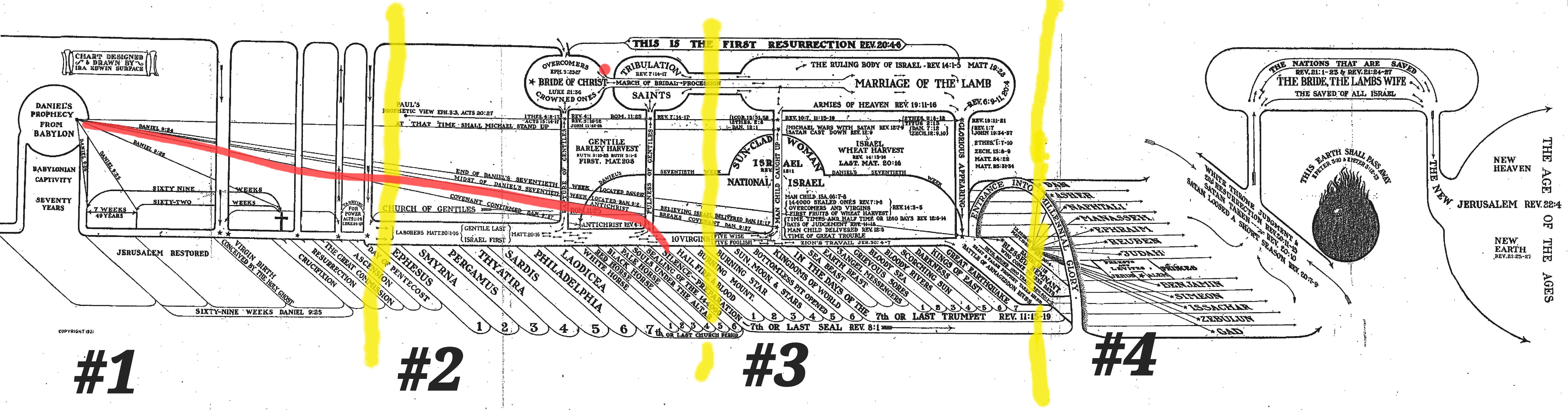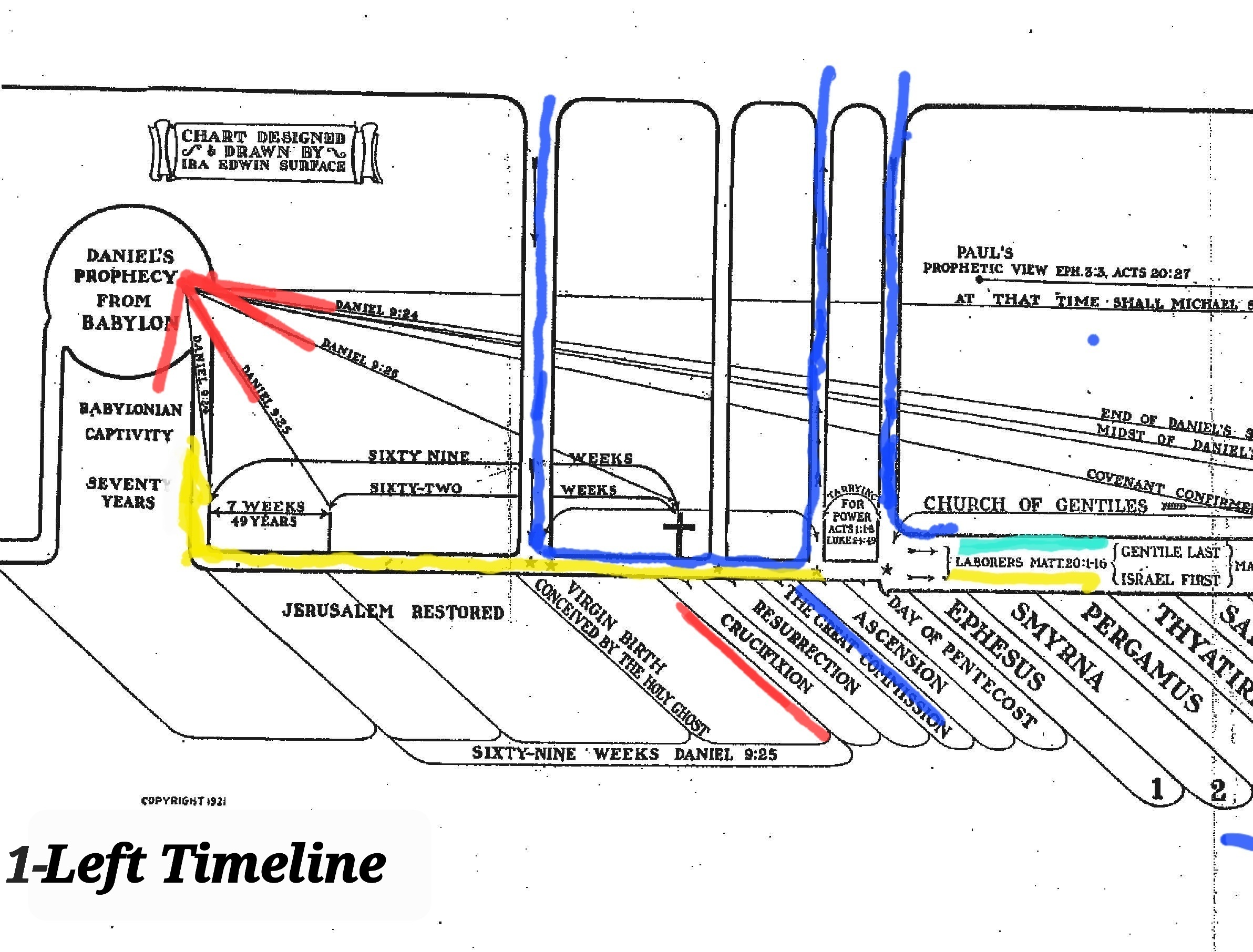 [Highlight in Yellow] the path coming straight down from Daniel’s Prophecy and then turns right; this will be the important path of the Jews, which will continue all the way through this timeline.