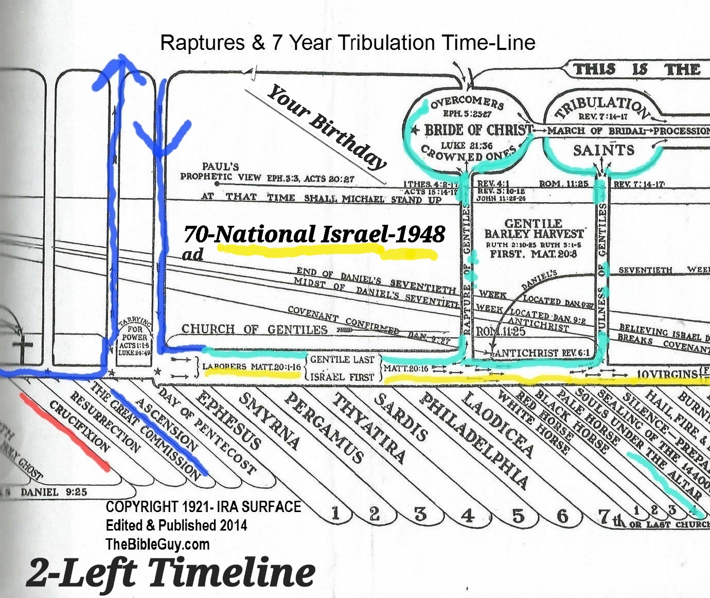 1. In the very middle of this section you will find the most white space where we will enter a prophetic event that had not yet taken place in the time of the publishing of this timeline in 1921. When Ira Surface wrote the book in 1919 which I republished (THE FIRST AND THE LAST) of which this timeline was inserted, Israel had not become a nation yet. Therefore we must enter it because it is the Number One Key of what is taking placed in the world today in the year 2024. 70 AD was the year Israel collapsed and then reinstated in 1948.